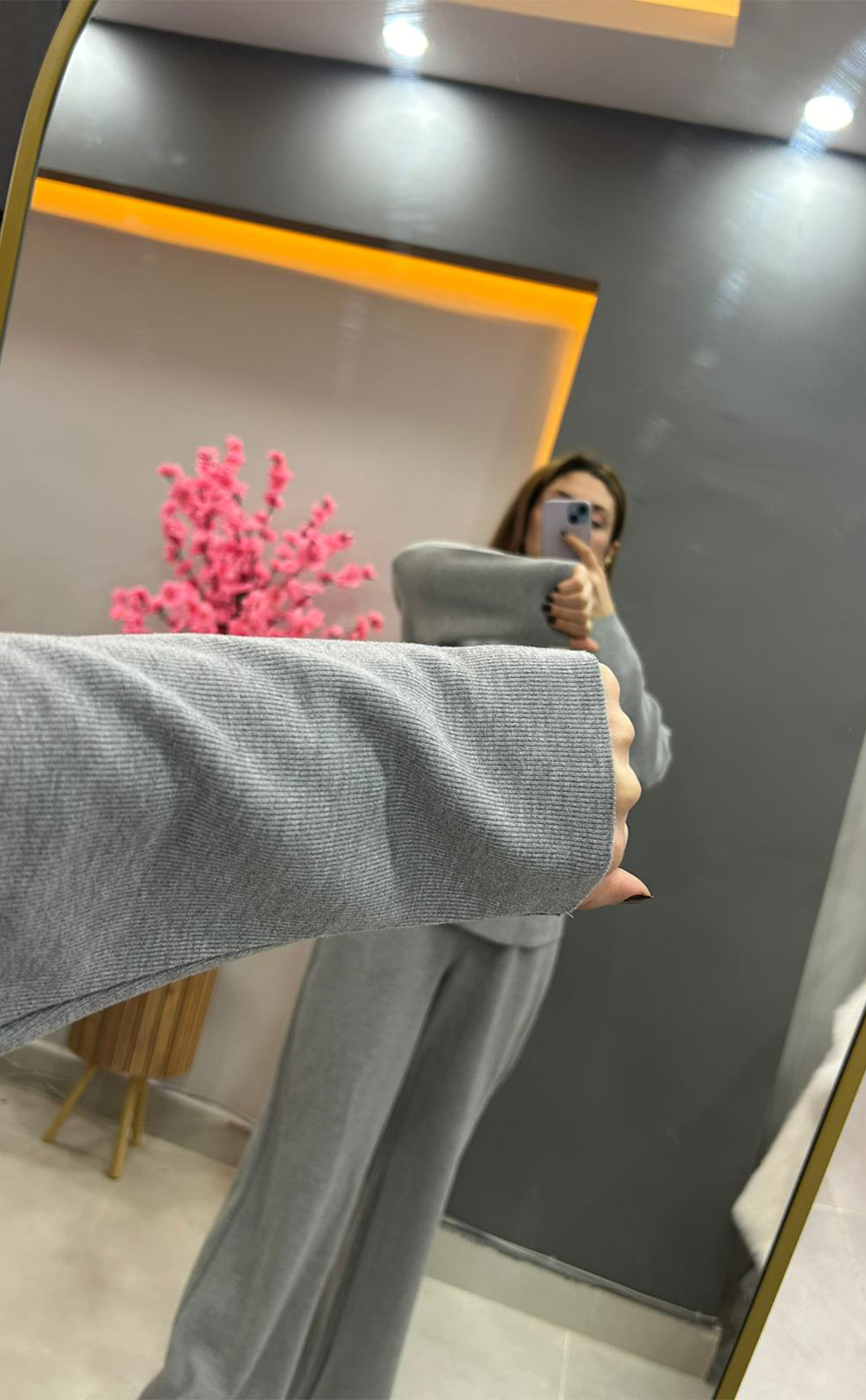 Gri polo yaka eşofman takımı, rahat bir stil sunarak şıklığınızı rahatça tamamlar.